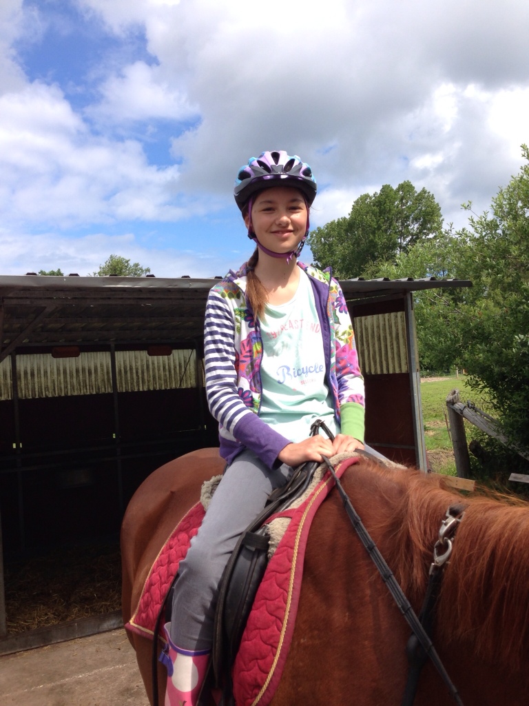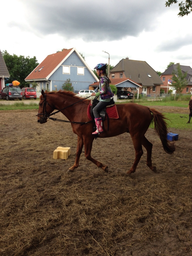 Ich bin mit fast meiner ganze Familie ausgeritten. Meine Mutter ist seit 20 Jahren nicht geritten, aber heute haben wir, meine kleinen Geschwister und ich, sie rumgekriegt, mit uns auszureiten. Unsere Pferde hießen: Otto, Johnny, Lord und Bento. Ich freu mich schon auf den Muskelkater von Mama morgen! Hihi!